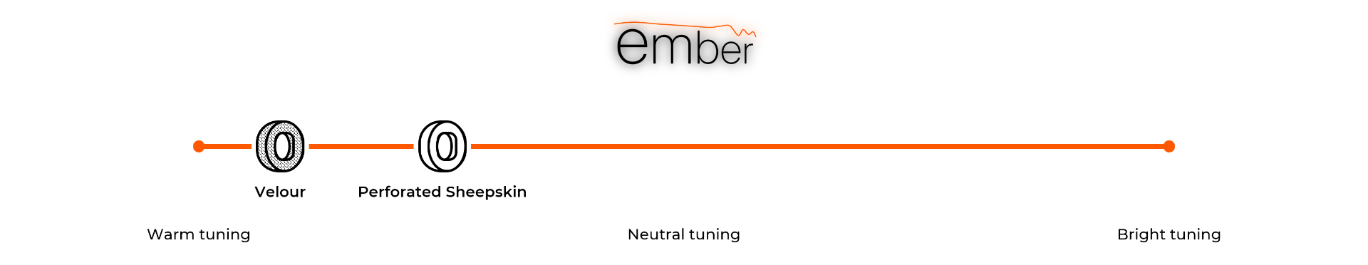 The perforated sheepskin earpads offer the natural-warm sound of the Ember with a large and spacious feeling.