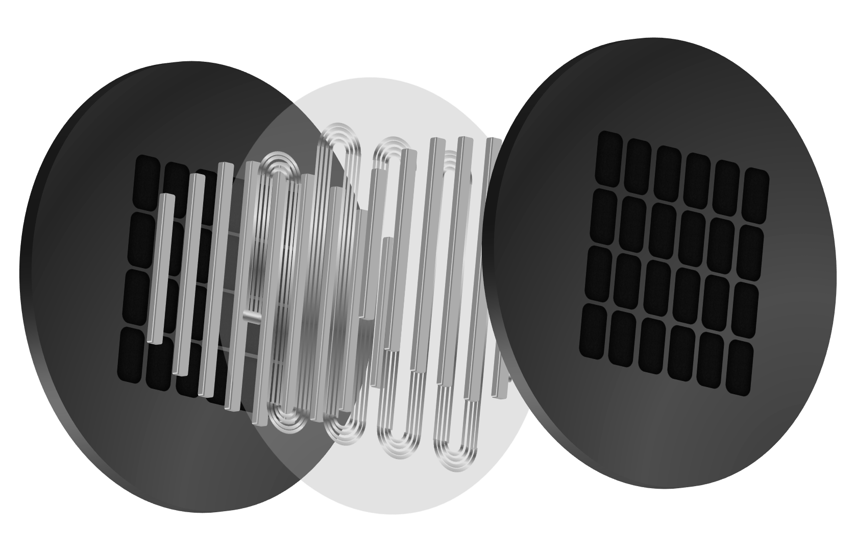 Symmetrically placed neodymium magnets on each side of the diaphragm to create a uniform activation across the whole surface.